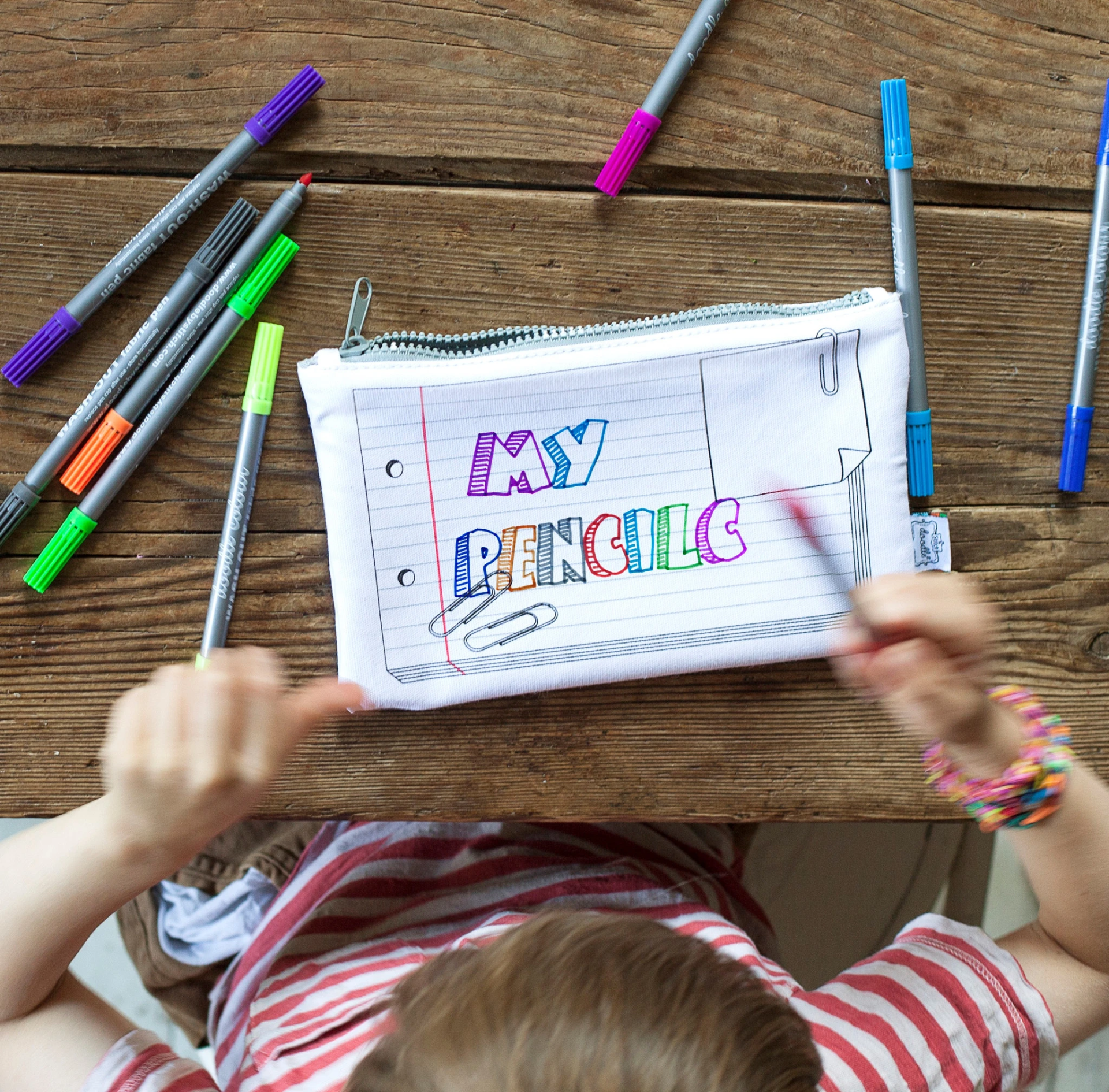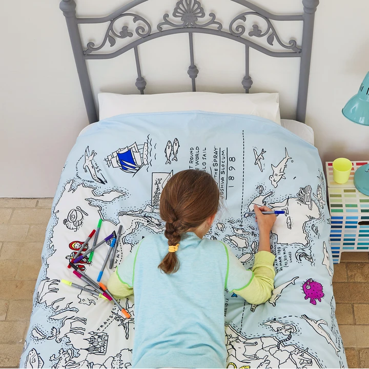 Presentes divertidos e educativos em têxteis, de estojos a bolsas, toalhas de mesa e fronhas completas com 10 canetas laváveis para reutilização e criatividade infinitas!
