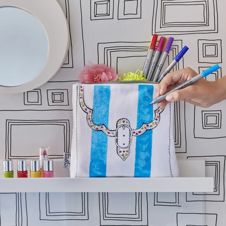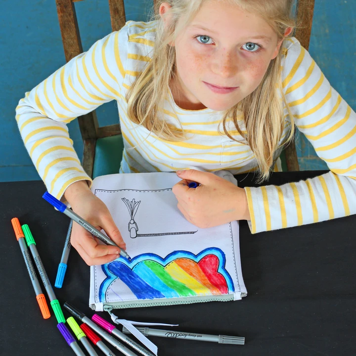 com um conjunto de dez canetas coloridas de tecido laváveis para todos os seus